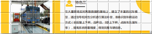 整车式动态汽车衡-系统组成 采用整车称重的方式获得车辆总重的动态公路车辆自动衡器,基于先进的高性能嵌入式处理技术,通过实时高速动态采样,多路信号精细重现不同时刻重量变化,实现单车通行、连续过车等复杂工况下的精准称重。